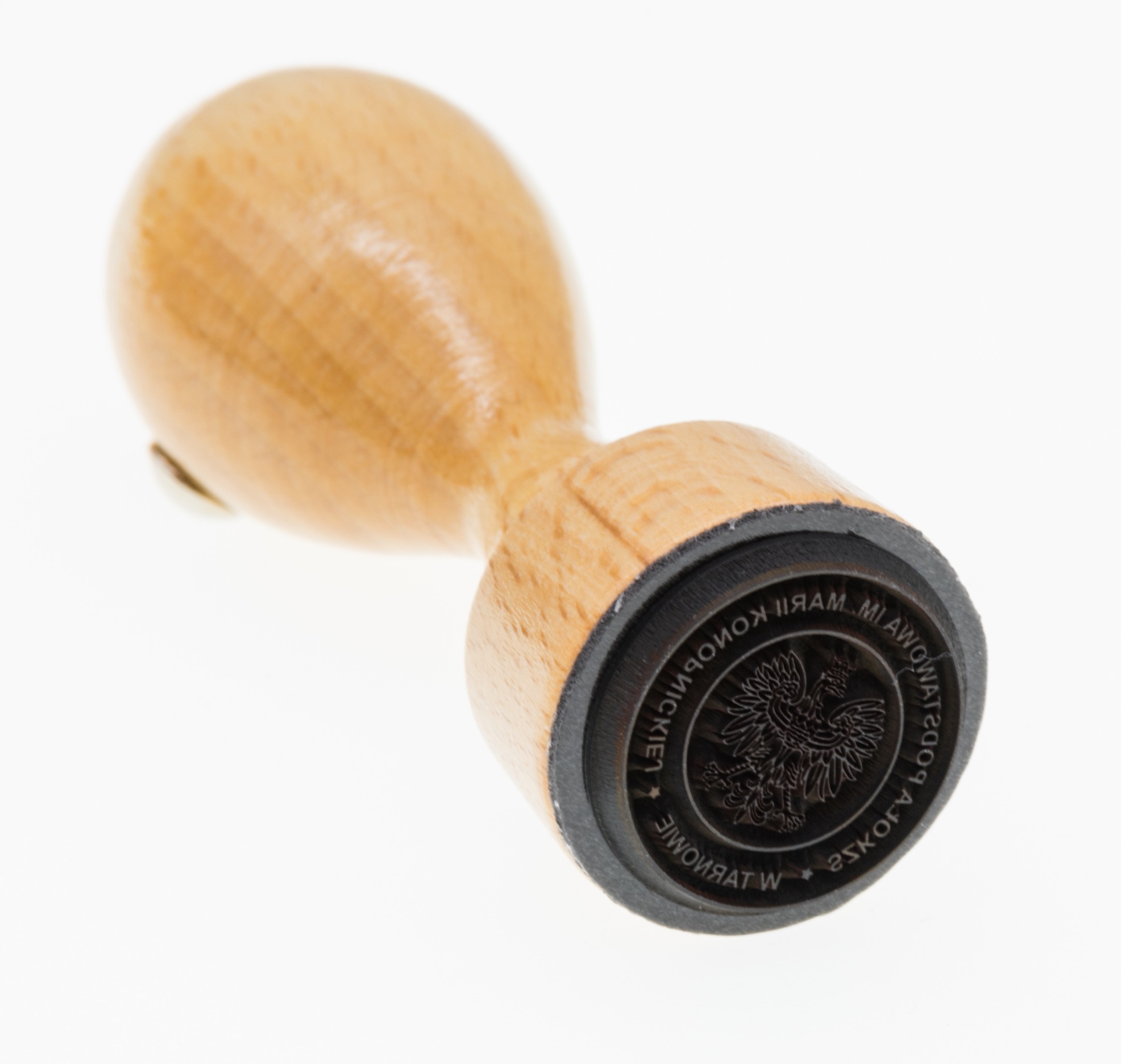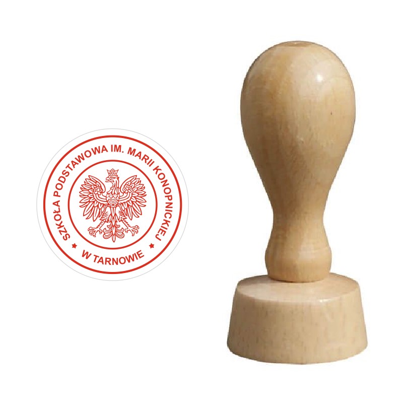 Precyzyjnie wygrawerowana gumka na drewnianym kołku o średnicy 25mm. Wygodna i poręczna. Odbijana zazwyczaj w legitymacjach szkolnych, na dyplomach, świadectwach czy nagrodach w postaci książek. Zapewniamy idealne odwzorowanie metalowej pieczęci. Wiemy, jak ciężkie jest stemplowanie pism oryginalną pieczątką z mennicy - dlatego zamień katorgę w przyjemną pracę.