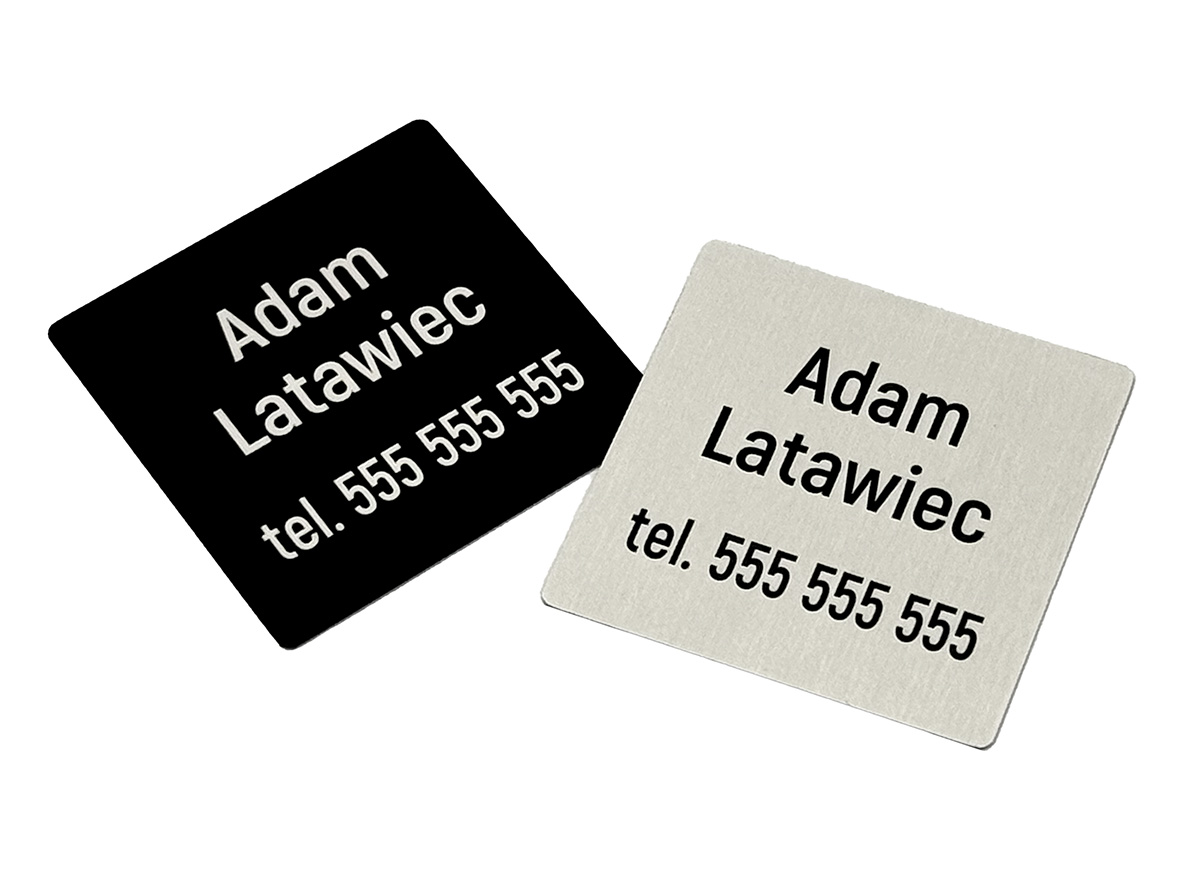 Wysokiej jakości tabliczka znamionowa wykonana z aluminium.- Aluminium o grubości 0,2mm- Rozmiar 30x30mm- Podklejona mocną taśmą dwustronną